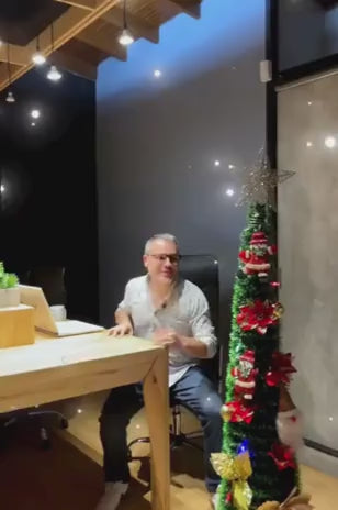 Luego puedes añadir tus luces y adornos favoritos, lo cual no toma más de 10 minutos en total debido a que el árbol no tiene ramas que dificultan la instalación de las extensiones de luces y cuenta con pastas de plástico para poner tus adornos navideños fácil y rápido.