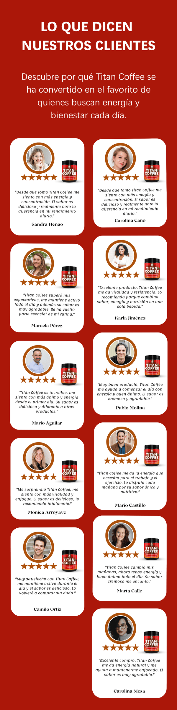 A diferencia del café tradicional, Titan Coffee aporta energía más estable, además de nutrientes que favorecen el enfoque, la vitalidad y el bienestar general.