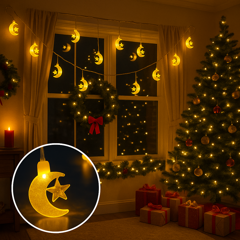 JUEGO DE LUCES DE MEDIA LUNA Y ESTRELLAS 5 METROS
