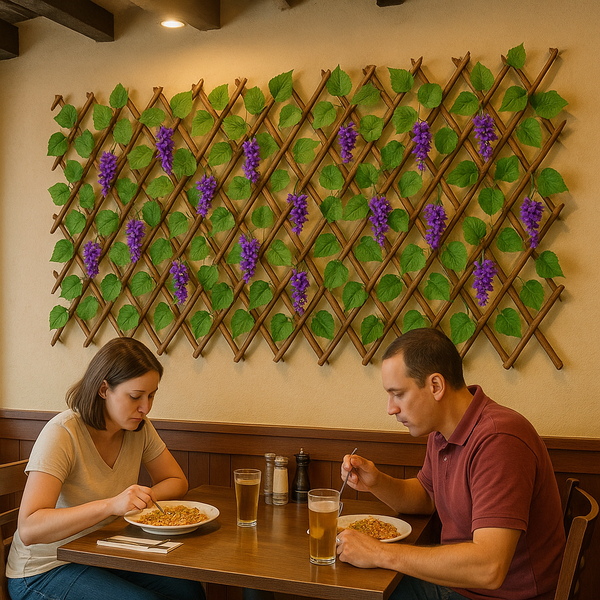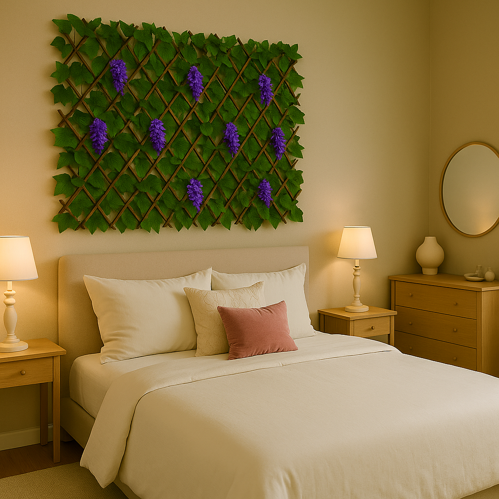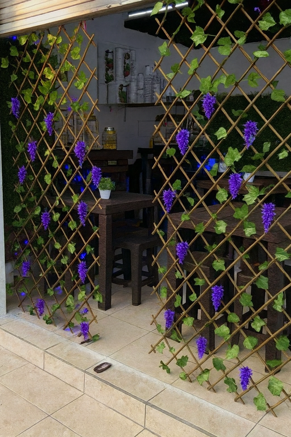 Nuestra malla con flores moradas convierte cualquier pared en el detalle perfecto para restaurantes y cafés. Crea un ambiente cálido y fotogénico donde tus clientes disfruten de momentos inolvidables mientras se sienten rodeados de naturaleza y encanto.